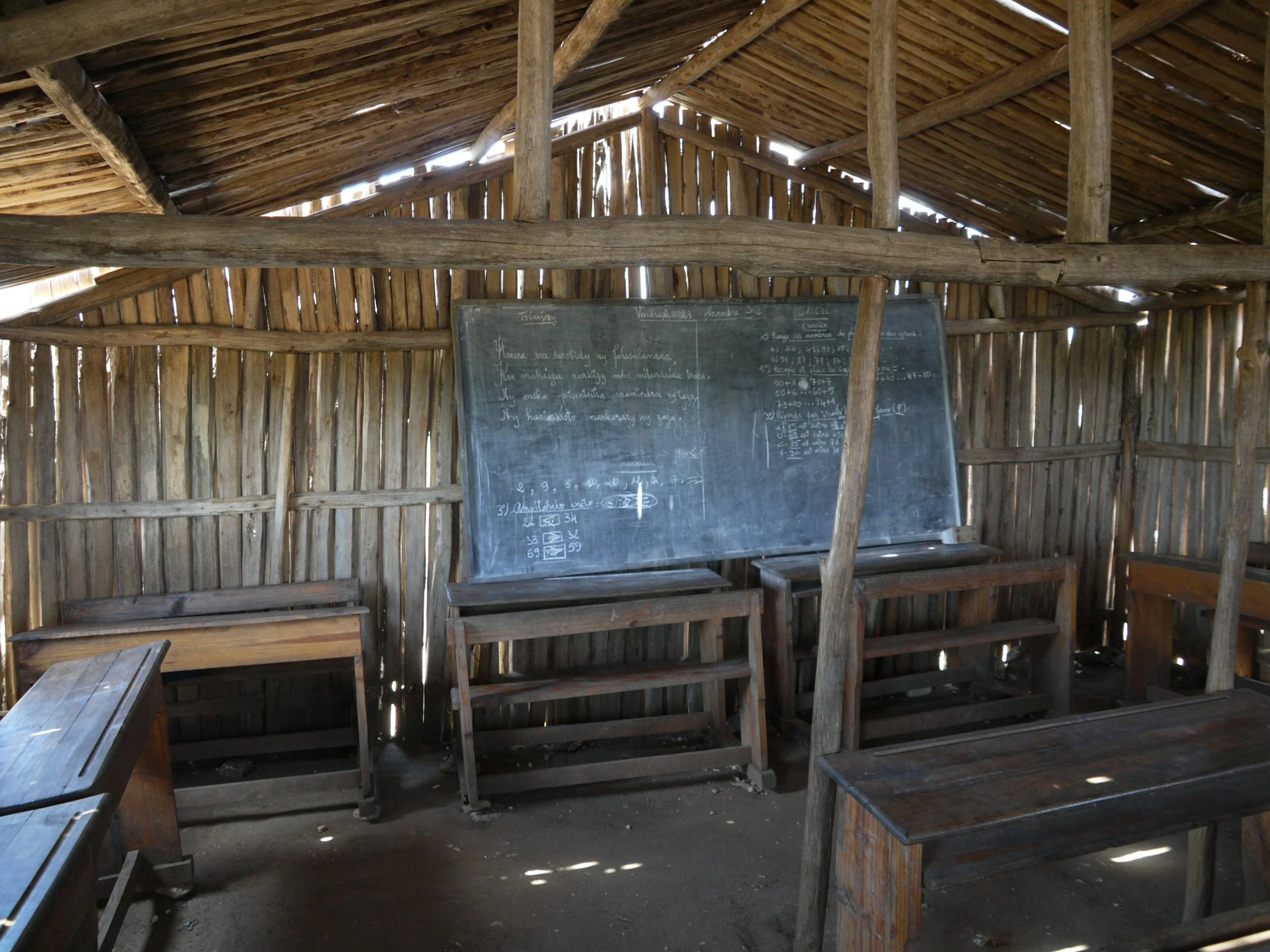 L’unique école de brousse comprend 124 élèves, regroupés dans une grande classe dans une case en bois.