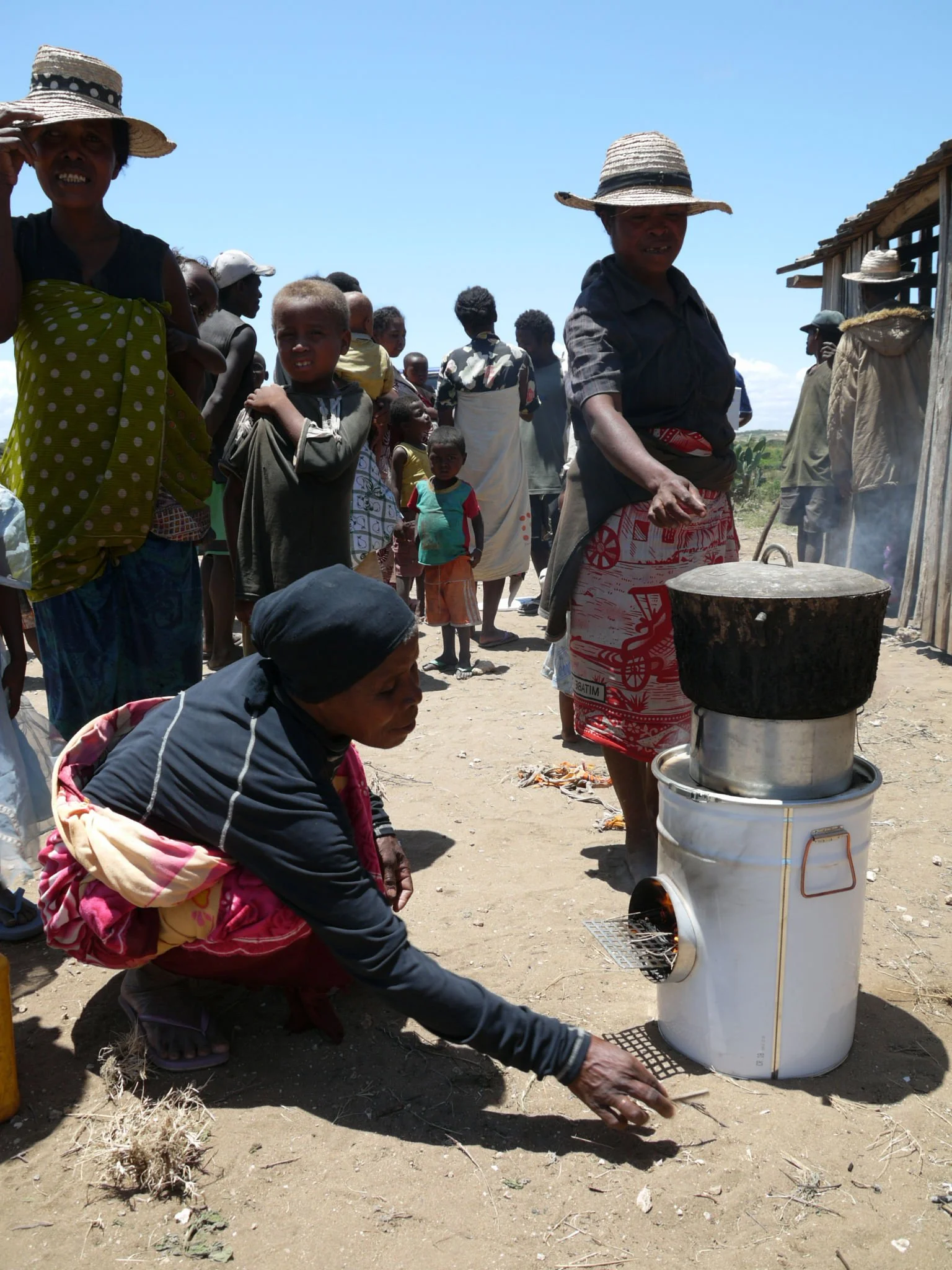 Dans le container, gracieusement offert à l'association, nous avons acheminé un cuiseur à Bois Econome. Le sud de madagascar étant une région semi-désertique ; l’utilisation d’un cuiseur à bois économe a été initiée afin d’épargner le bois rare et de limiter la dépense au charbon dans cette région.