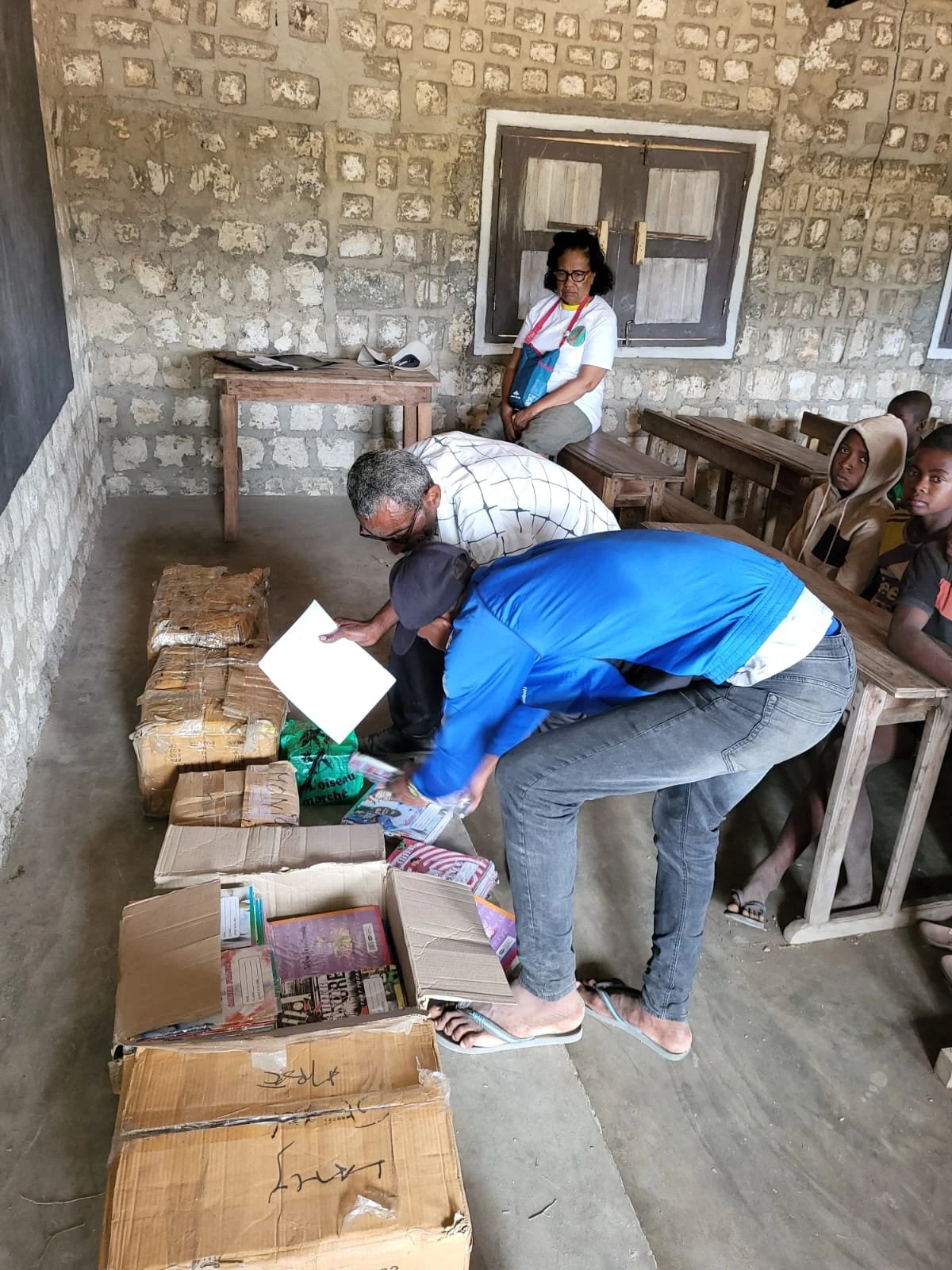 L’association achète localement les fournitures scolaires, des aides alimentaires en riz et en eau. Chaque année une aide financière est versée aux instituteurs des deux écoles.