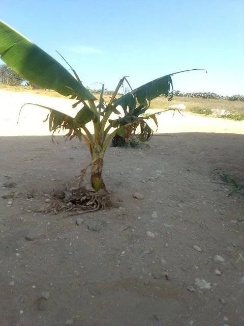 Plantations d'arbres fruitiers: papayers et cocotiers dans la cour d’école